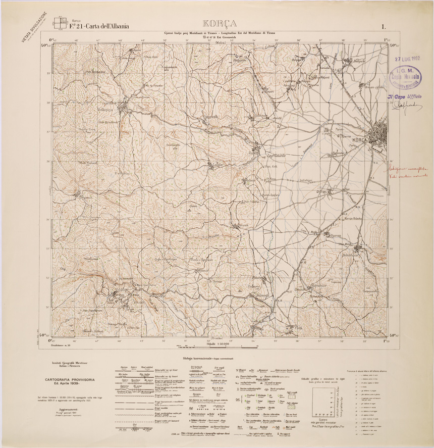 CARTA DELL'ALBANIA FOGLIO 21 I KORCA