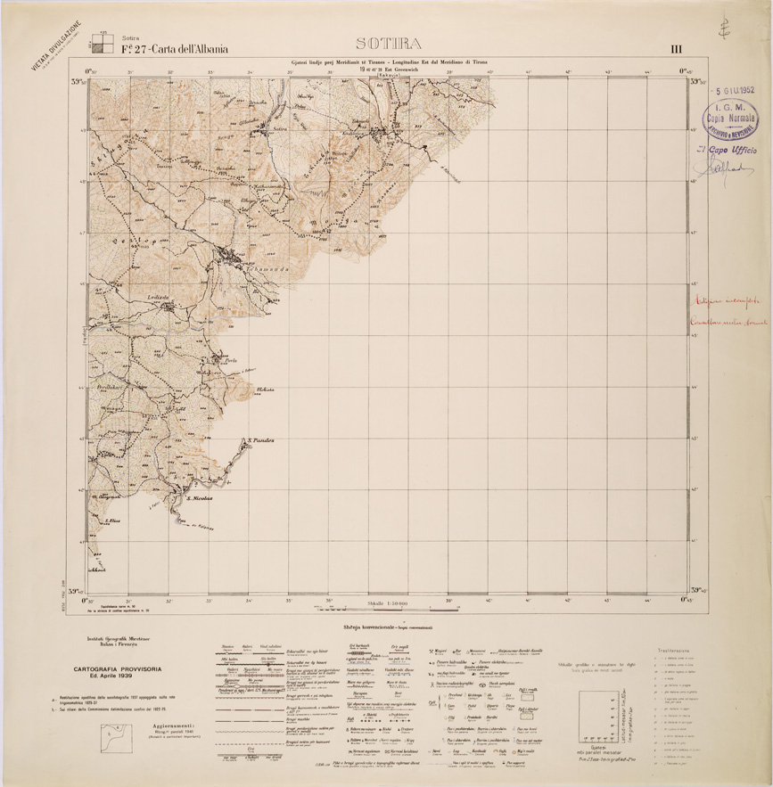 CARTA DELL'ALBANIA FOGLIO 27 III SOTIRA