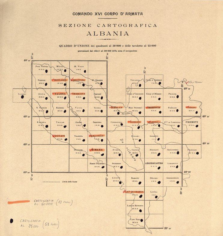 "Carta della Sezione Cartografica del Comando XVI Corpo d' Armata in Albania."