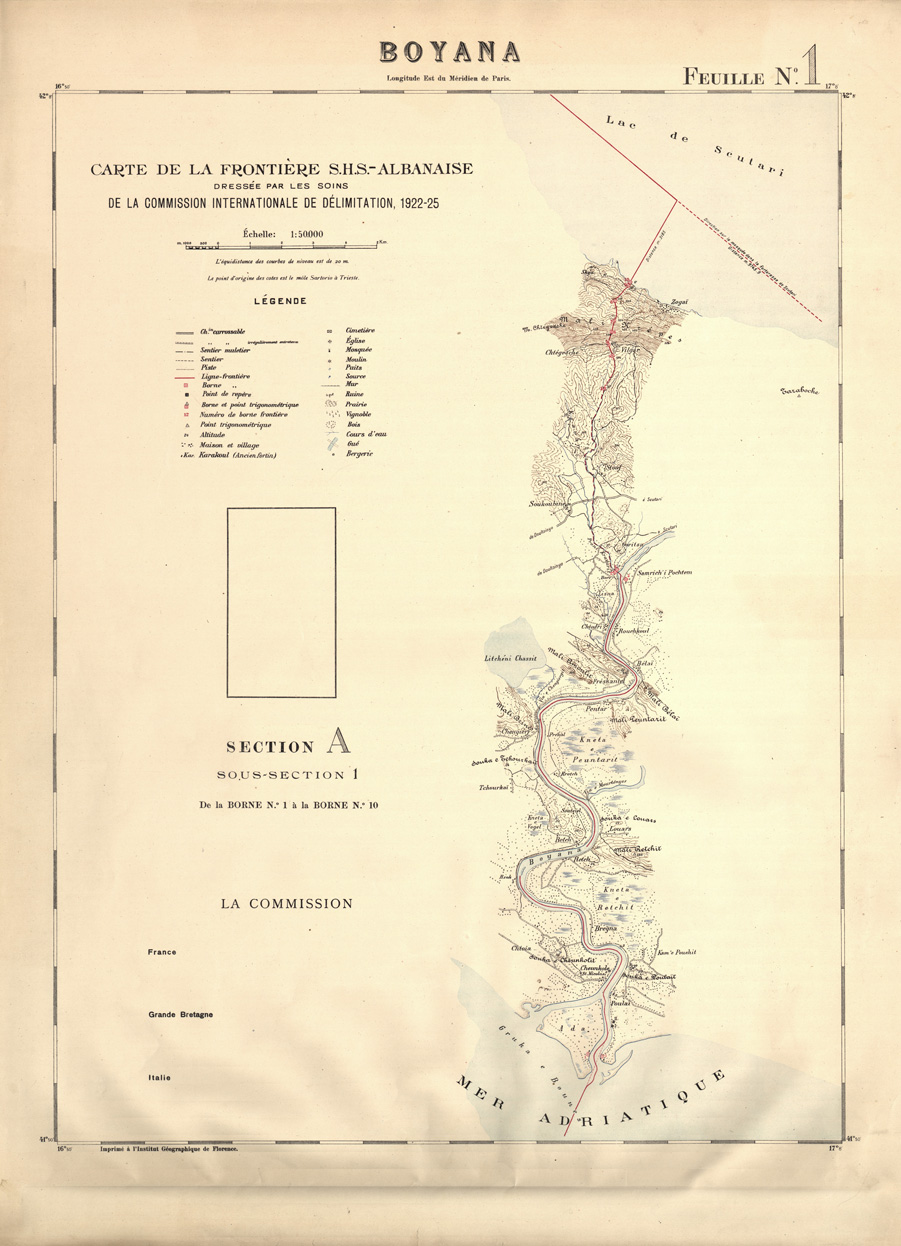CARTE DE LA FRONTIERE S.H.S. - ALBANAISE - FEUILLE 01 - BOYANA