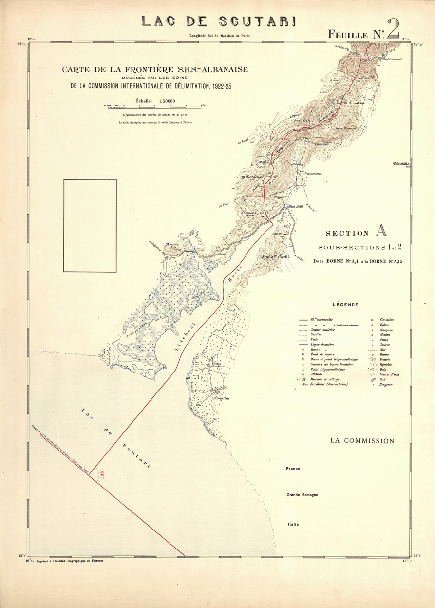 CARTE DE LA FRONTIERE S.H.S. - ALBANAISE - FEUILLE 02 - LAC DE SCUTARI