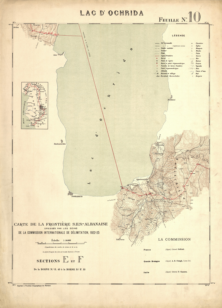 CARTE DE LA FRONTIERE S.H.S. - ALBANAISE - FEUILLE 10 - LAC D' OCHRIDA
