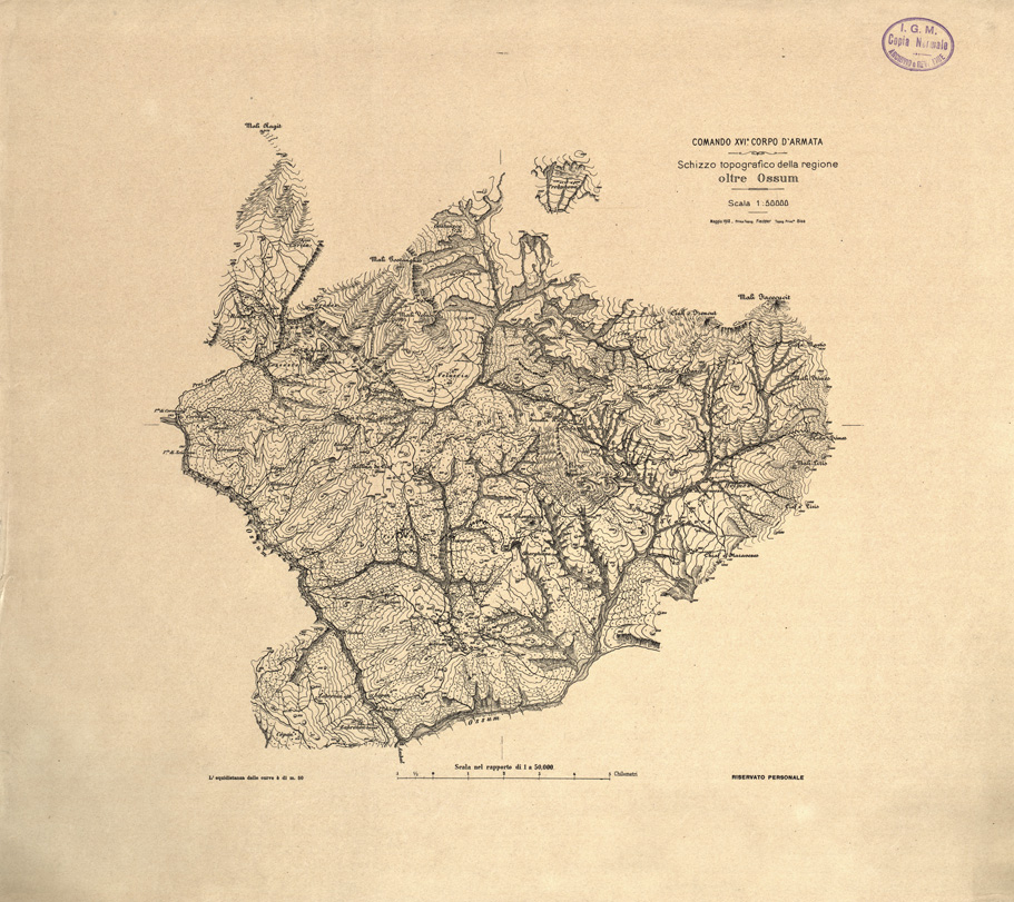 "Rilievo eseguito dalla Sezione Cartografica del Comando XVI Corpo d' Armata."