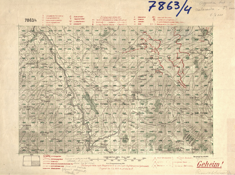 La “Grande Guerra” rallentò notevolmente l´attività topocartografica programmata e quasi tutte le energie dell´Istituto furono profuse per i lavori topografici di supporto alle operazioni militari. Dopo il trattato di pace i primi lavori cartografici riguardarono i territori redenti.