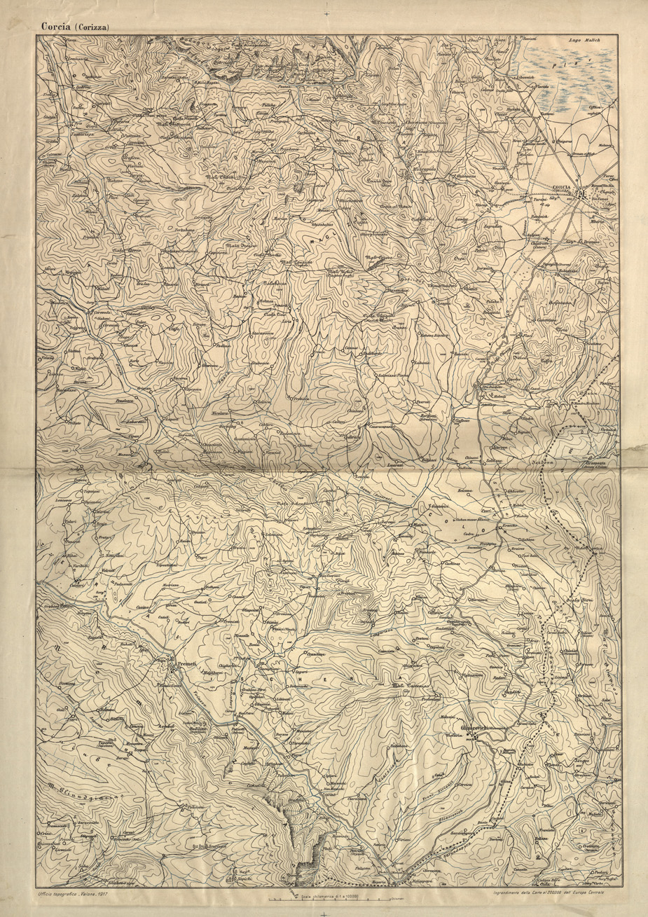 "Carta realizzata dall' Ufficio Topografico di Valona mediante ingrandimento dalla Carta dell' Europa Centrale alla scala di 1:200.000"