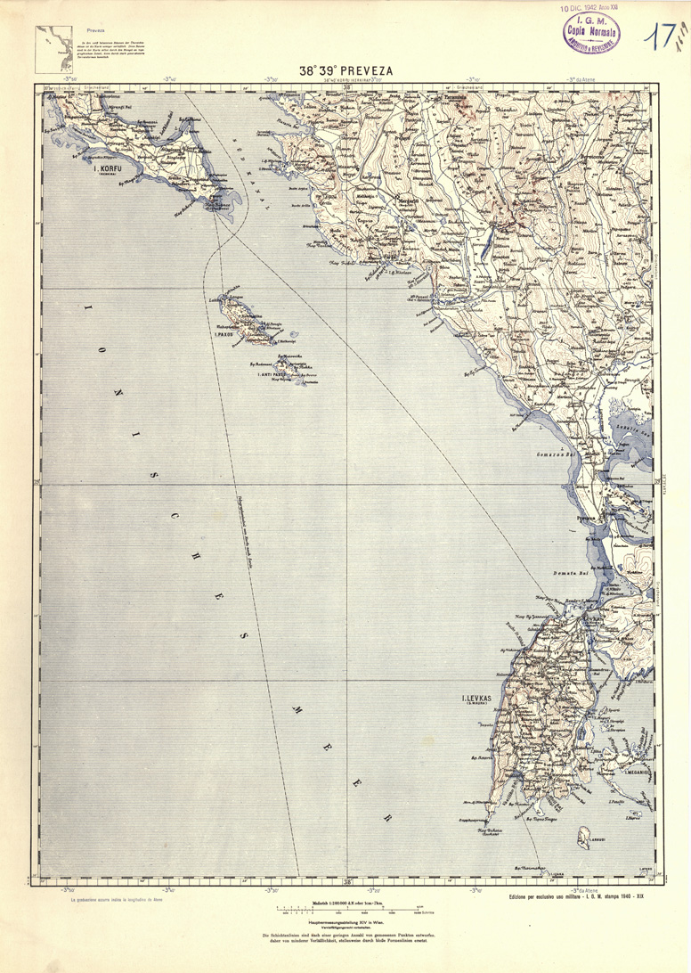 "Carta dell'Albania e Grecia al 200.000 stampa del 1940 4 colori equidistanza delle curve m. 100"