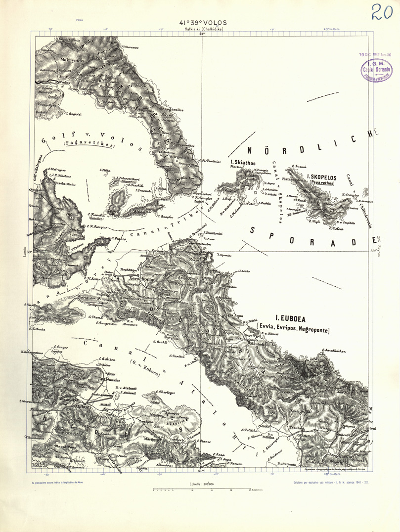 "Carta dell'Albania e Grecia al 200.000 stampa del 1940 4 colori equidistanza delle curve m. 100"