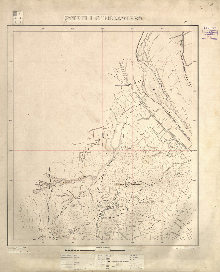 "Rilievo eseguito dall' IGM e facente parte di un vasto programma di rilevamento aerofotogrammetrico a grande scala dei principali centri urbani Albanesi."