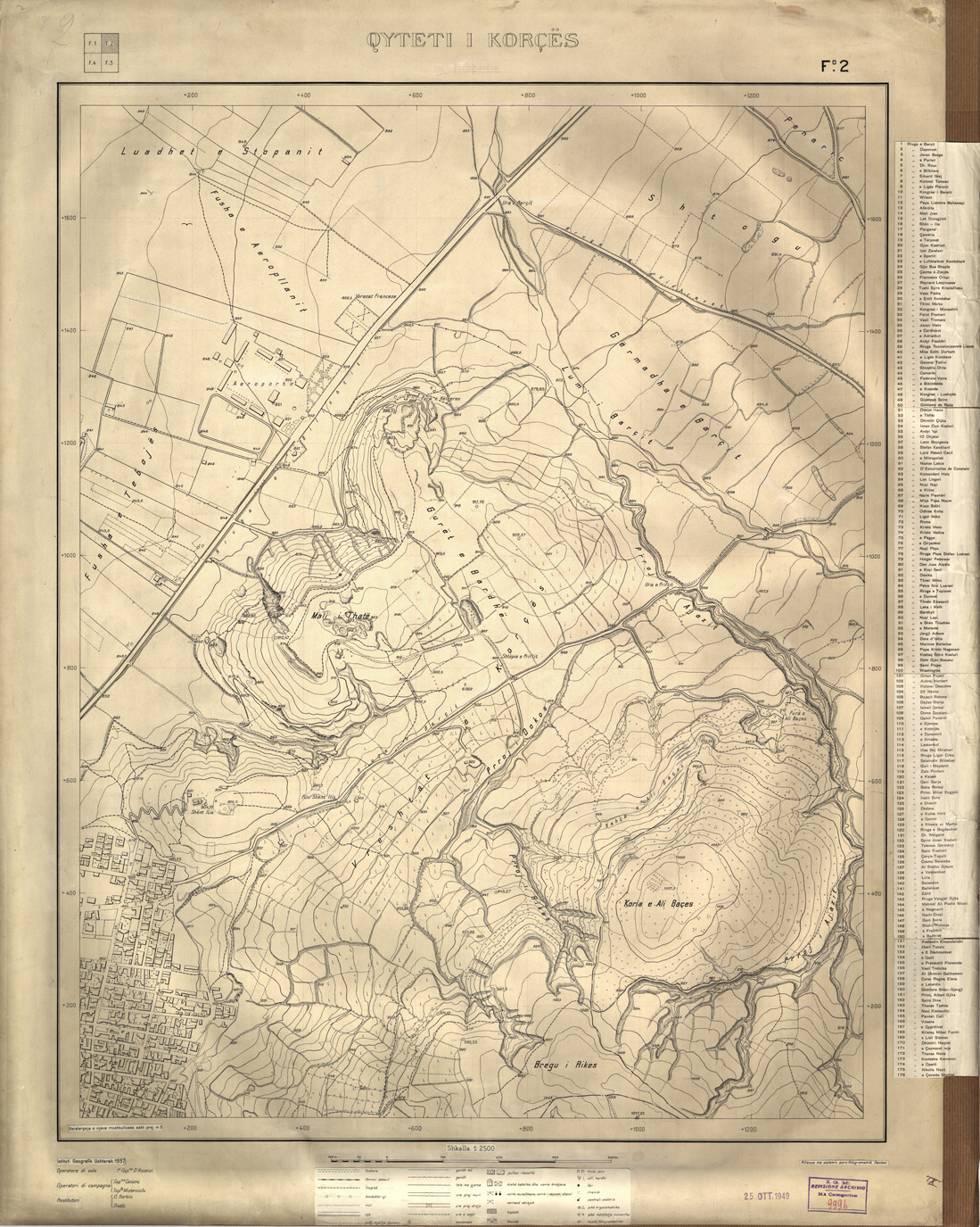 "Rilievo eseguito dall' IGM e facente parte di un vasto programma di rilevamento aerofotogrammetrico a grande scala dei principali centri urbani Albanesi."