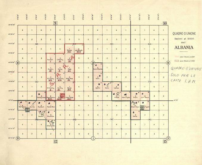 ALBANIA RILIEVI IGM - QUADRO D'UNIONE