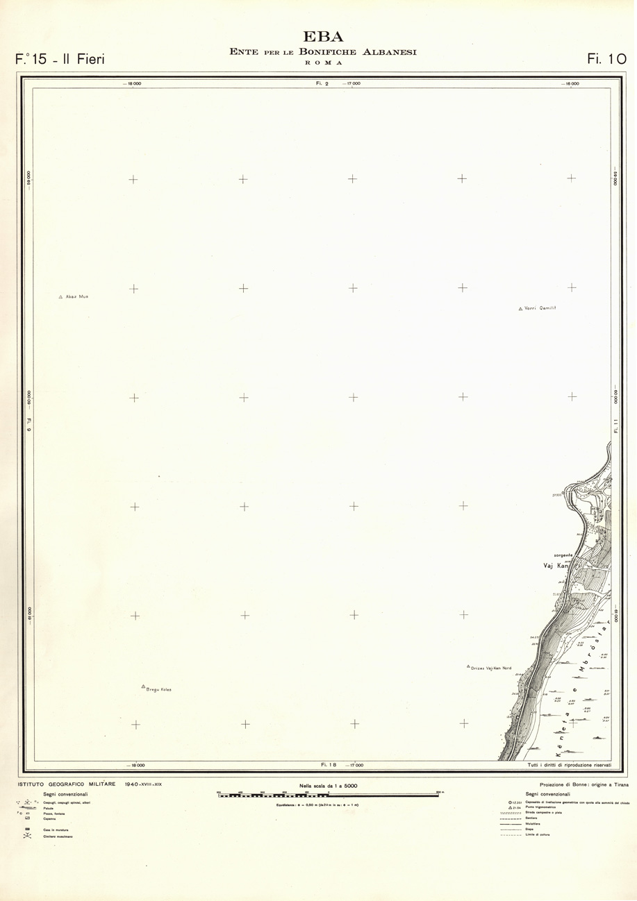 "Rilievi effettuati dall' IGM negli anni dal 1939 al 1943 per conto dell' Ente per le Bonifiche Albanesi istituito dal Ministero Esteri - Sottosegretariato Affari Albanesi."
