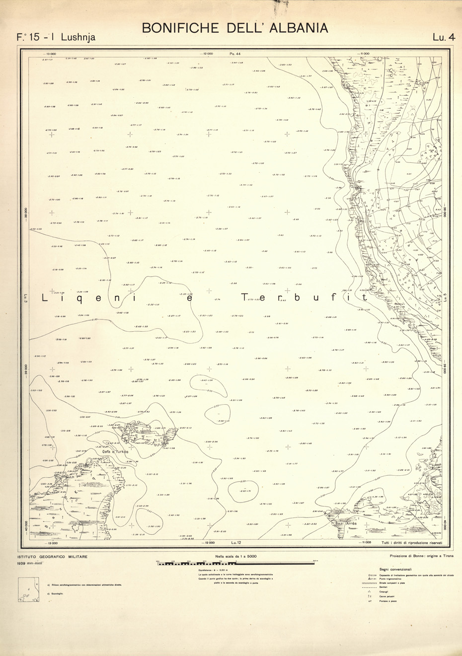 "Rilievi effettuati dall' IGM negli anni dal 1939 al 1943 per conto dell' Ente per le Bonifiche Albanesi istituito dal Ministero Esteri - Sottosegretariato Affari Albanesi."