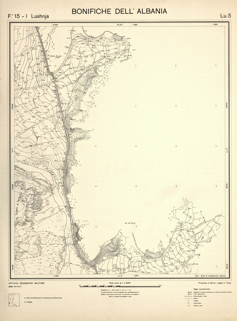 "Rilievi effettuati dall' IGM negli anni dal 1939 al 1943 per conto dell' Ente per le Bonifiche Albanesi istituito dal Ministero Esteri - Sottosegretariato Affari Albanesi."