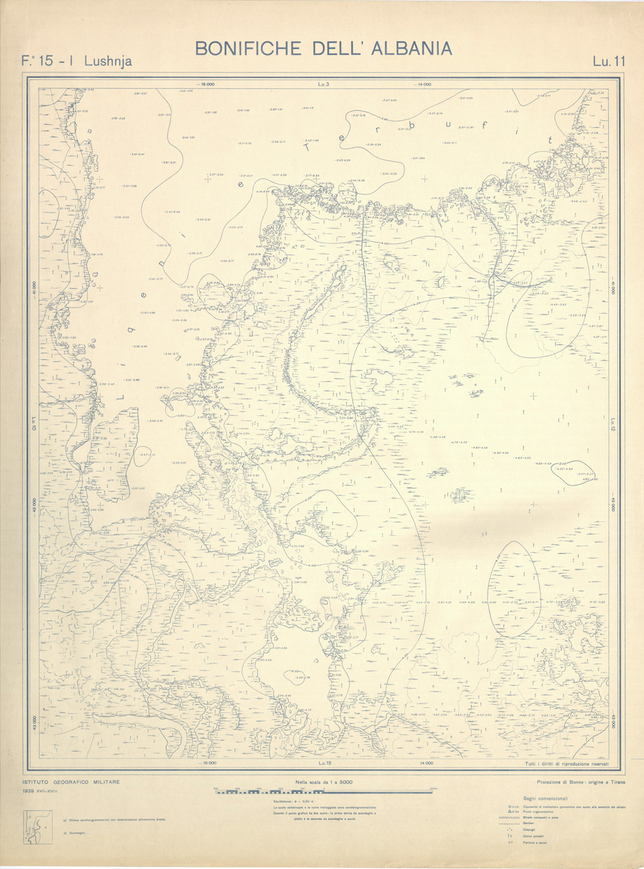 "Rilievi effettuati dall' IGM negli anni dal 1939 al 1943 per conto dell' Ente per le Bonifiche Albanesi istituito dal Ministero Esteri - Sottosegretariato Affari Albanesi."