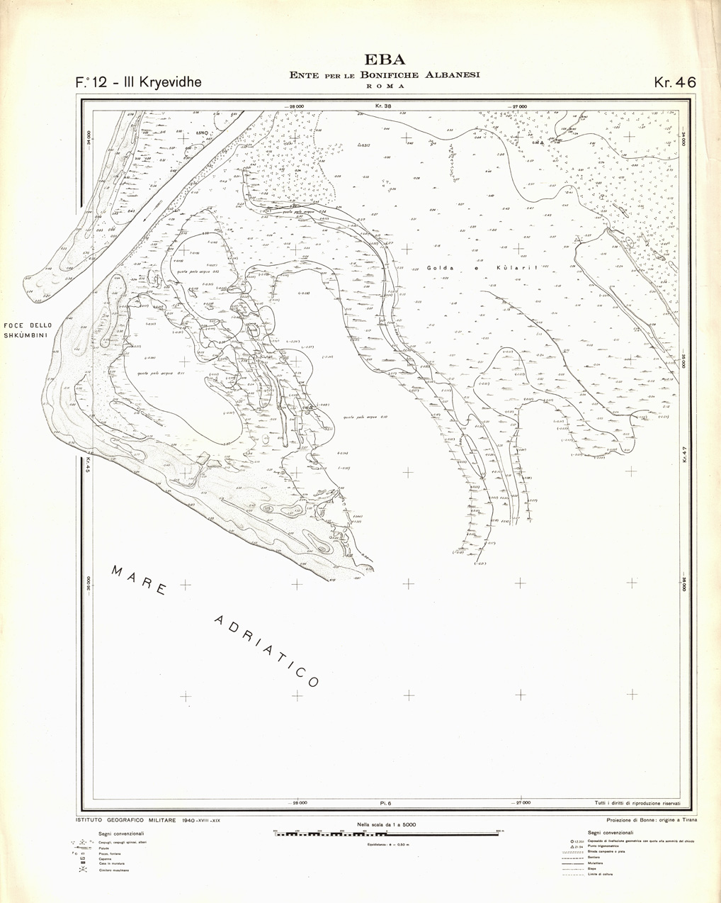 "Rilievi effettuati dall' IGM negli anni dal 1939 al 1943 per conto dell' Ente per le Bonifiche Albanesi istituito dal Ministero Esteri - Sottosegretariato Affari Albanesi."
