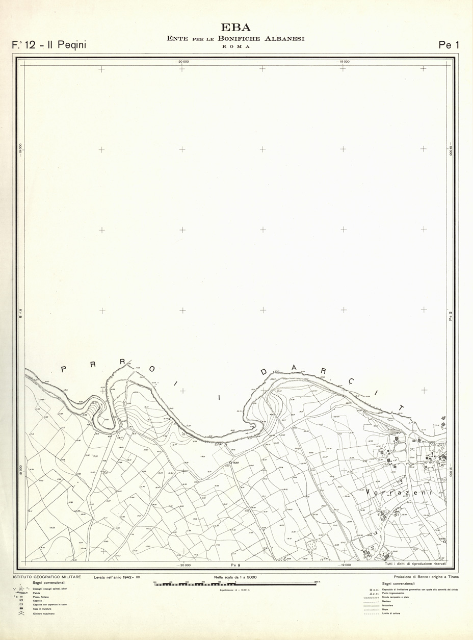 "Rilievi effettuati dall' IGM negli anni dal 1939 al 1943 per conto dell' Ente per le Bonifiche Albanesi istituito dal Ministero Esteri - Sottosegretariato Affari Albanesi."