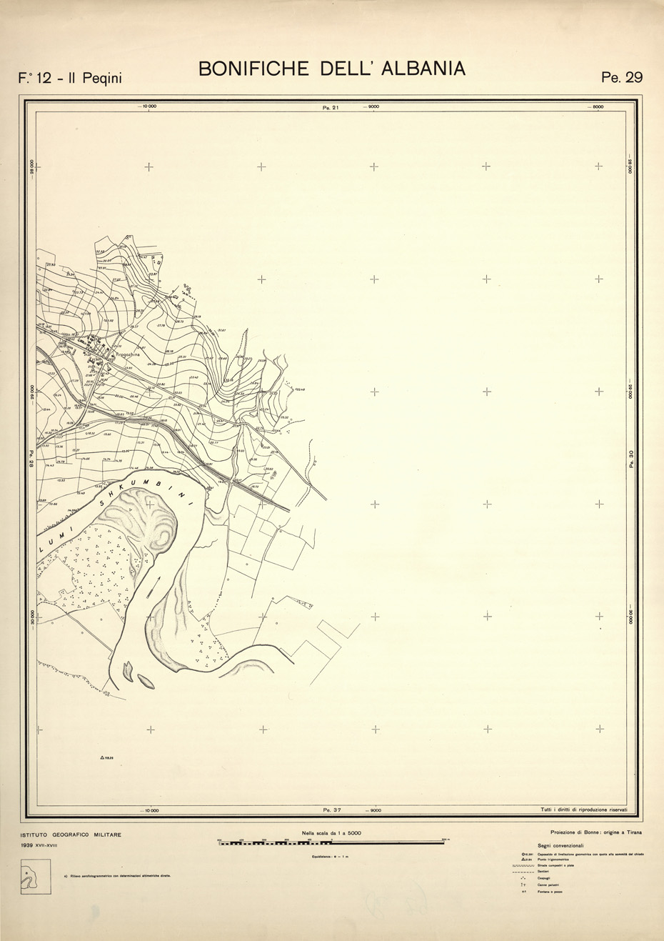 "Rilievi effettuati dall' IGM negli anni dal 1939 al 1943 per conto dell' Ente per le Bonifiche Albanesi istituito dal Ministero Esteri - Sottosegretariato Affari Albanesi."