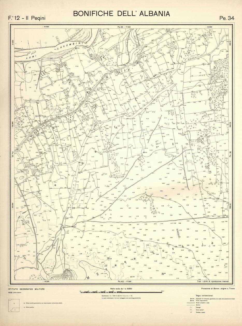 "Rilievi effettuati dall' IGM negli anni dal 1939 al 1943 per conto dell' Ente per le Bonifiche Albanesi istituito dal Ministero Esteri - Sottosegretariato Affari Albanesi."