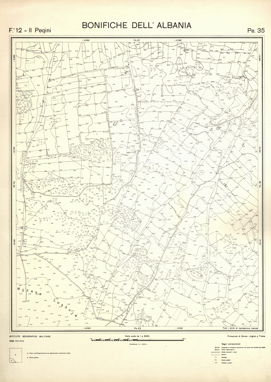 "Rilievi effettuati dall' IGM negli anni dal 1939 al 1943 per conto dell' Ente per le Bonifiche Albanesi istituito dal Ministero Esteri - Sottosegretariato Affari Albanesi."