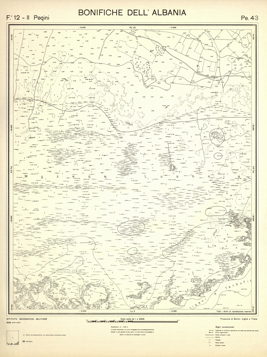 "Rilievi effettuati dall' IGM negli anni dal 1939 al 1943 per conto dell' Ente per le Bonifiche Albanesi istituito dal Ministero Esteri - Sottosegretariato Affari Albanesi."