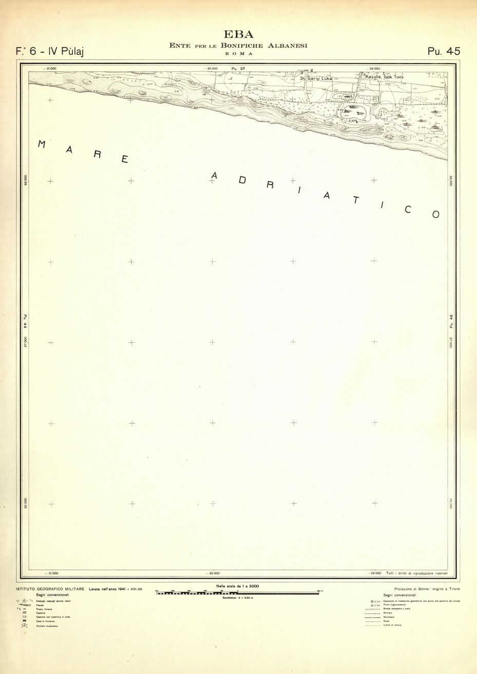 "Rilievi effettuati dall' IGM negli anni dal 1939 al 1943 per conto dell' Ente per le Bonifiche Albanesi istituito dal Ministero Esteri - Sottosegretariato Affari Albanesi."