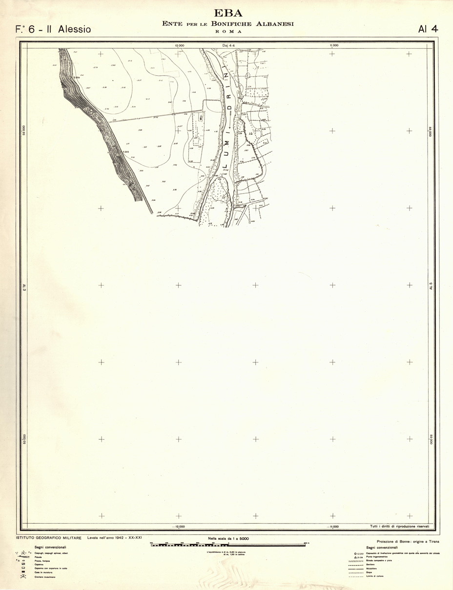 "Rilievi effettuati dall' IGM negli anni dal 1939 al 1943 per conto dell' Ente per le Bonifiche Albanesi istituito dal Ministero Esteri - Sottosegretariato Affari Albanesi."