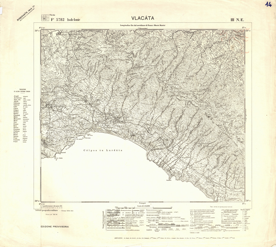 "Carta dell' IGM, ogni foglio riporta a lato una traduzione dei toponimi più comuni."