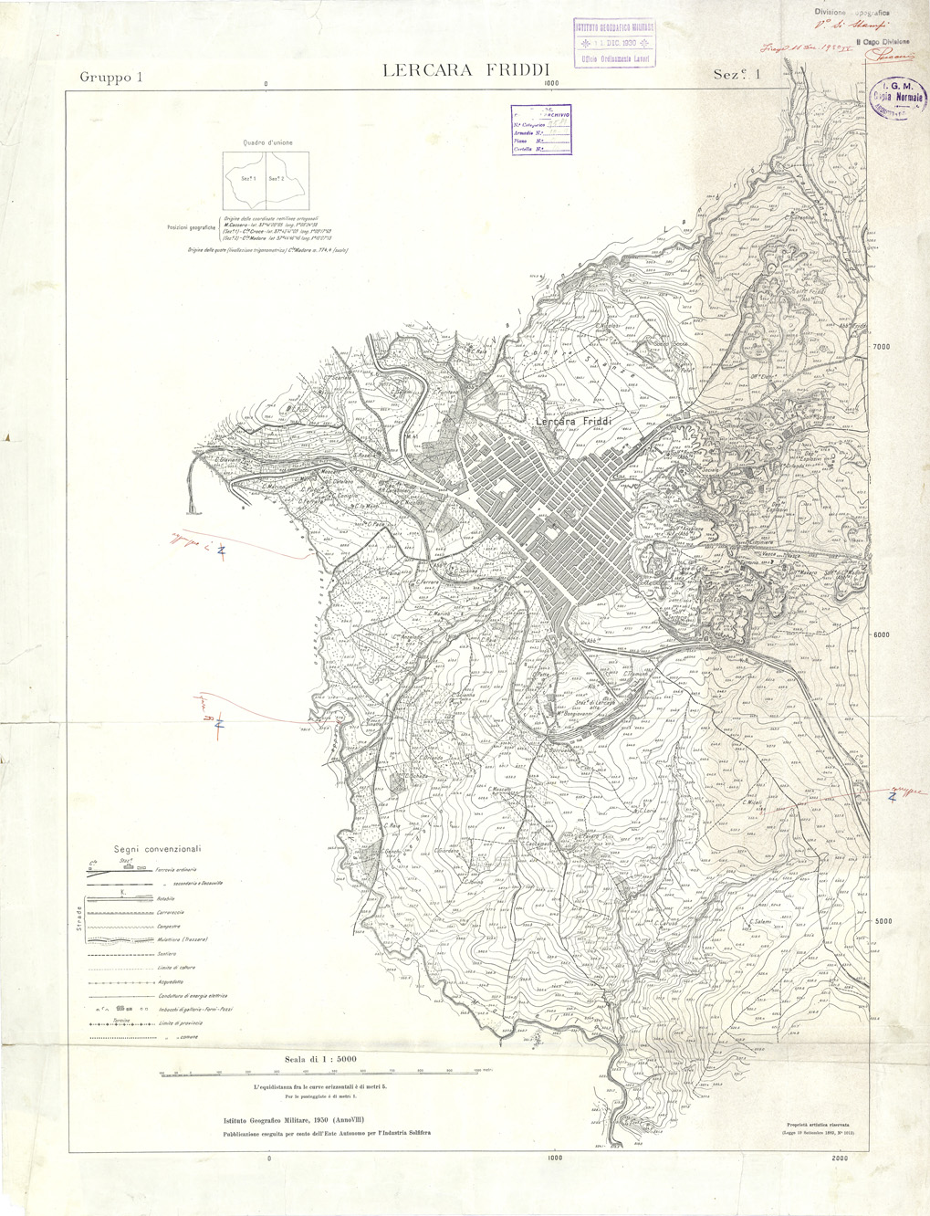 "Carta realizzata e pubblicata dall' IGM per conto dell' Ente Autonomo per l' Industria Solfifera, i rilievi furono eseguiti negli anni dal 1930 al 1933 e utilizzati in seguito anche per il completamento delle tavolette alla scala di 1:25.000 della Carta d' Italia."