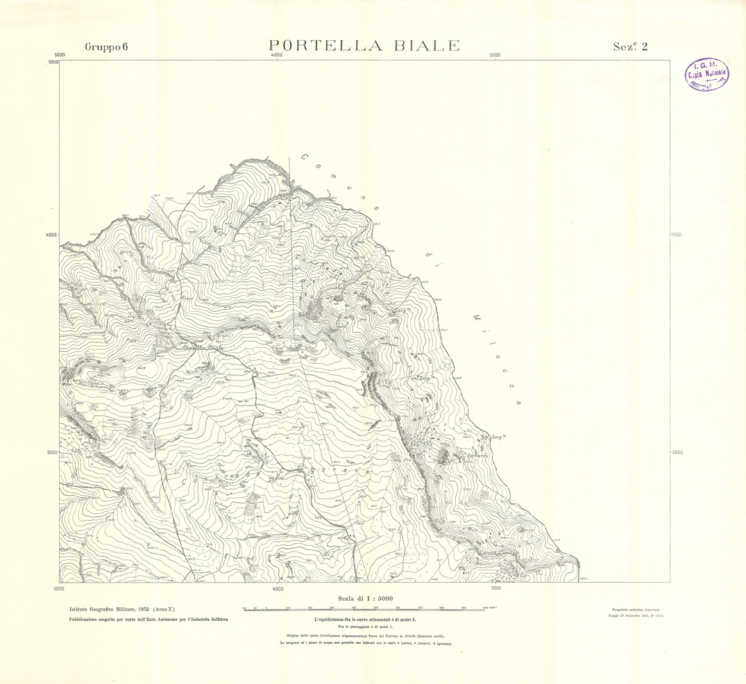 "Carta realizzata e pubblicata dall' IGM per conto dell' Ente Autonomo per l' Industria Solfifera, i rilievi furono eseguiti negli anni dal 1930 al 1933 e utilizzati in seguito anche per il completamento delle tavolette alla scala di 1:25.000 della Carta d' Italia."