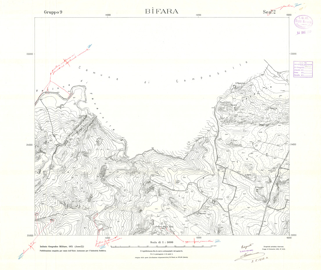 "Carta realizzata e pubblicata dall' IGM per conto dell' Ente Autonomo per l' Industria Solfifera, i rilievi furono eseguiti negli anni dal 1930 al 1933 e utilizzati in seguito anche per il completamento delle tavolette alla scala di 1:25.000 della Carta d' Italia."