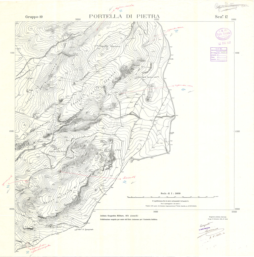"Carta realizzata e pubblicata dall' IGM per conto dell' Ente Autonomo per l' Industria Solfifera, i rilievi furono eseguiti negli anni dal 1930 al 1933 e utilizzati in seguito anche per il completamento delle tavolette alla scala di 1:25.000 della Carta d' Italia."