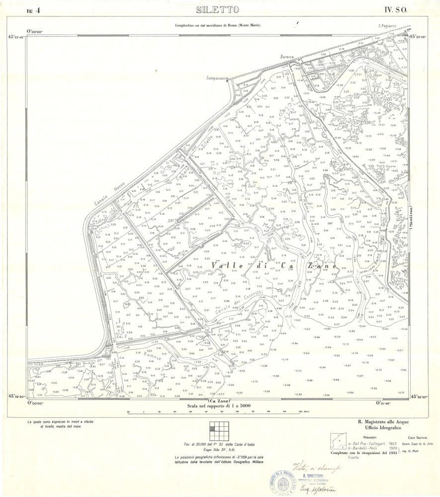 "Carta prodotta e stampata dall' IGM negli anni dal 1932 al 1934 su rilievi eseguiti dall' Ufficio Idrografico del Magistrato delle Acque negli anni dal 1921 al 1933"