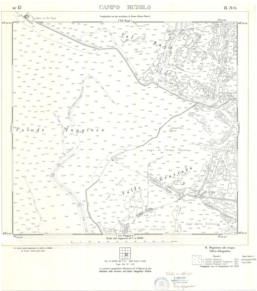 "Carta prodotta e stampata dall' IGM negli anni dal 1932 al 1934 su rilievi eseguiti dall' Ufficio Idrografico del Magistrato delle Acque negli anni dal 1921 al 1933"