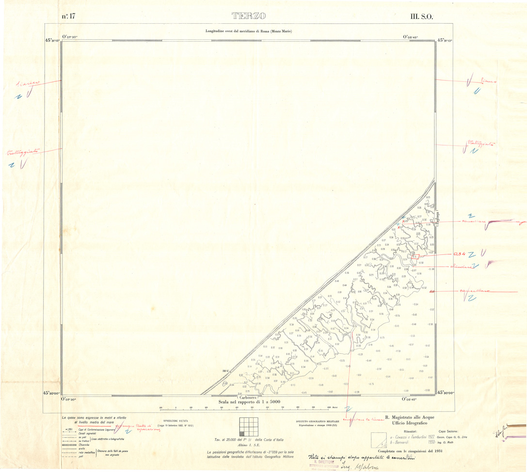 "Carta prodotta e stampata dall' IGM negli anni dal 1932 al 1934 su rilievi eseguiti dall' Ufficio Idrografico del Magistrato delle Acque negli anni dal 1921 al 1933"