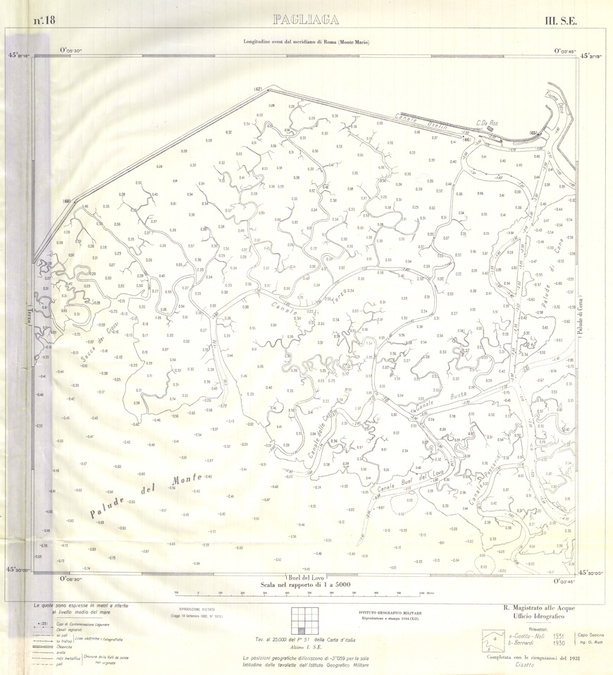 "Carta prodotta e stampata dall' IGM negli anni dal 1932 al 1934 su rilievi eseguiti dall' Ufficio Idrografico del Magistrato delle Acque negli anni dal 1921 al 1933"