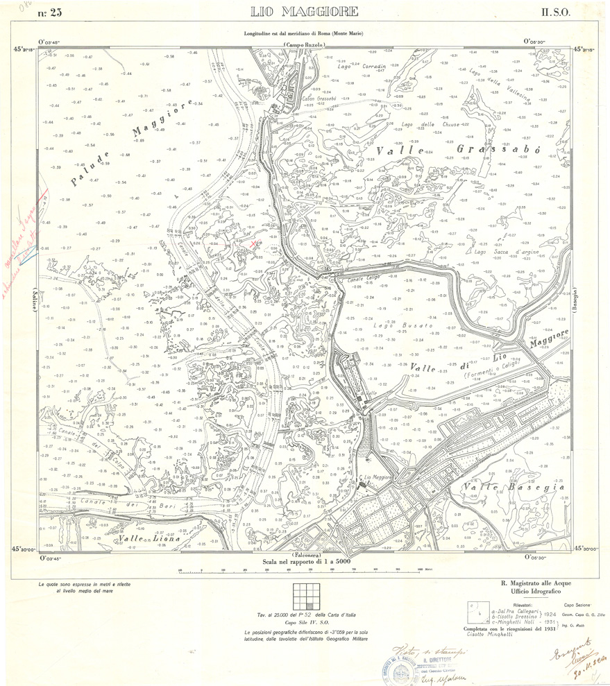 "Carta prodotta e stampata dall' IGM negli anni dal 1932 al 1934 su rilievi eseguiti dall' Ufficio Idrografico del Magistrato delle Acque negli anni dal 1921 al 1933"