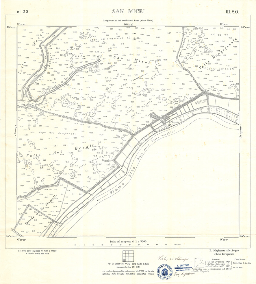 "Carta prodotta e stampata dall' IGM negli anni dal 1932 al 1934 su rilievi eseguiti dall' Ufficio Idrografico del Magistrato delle Acque negli anni dal 1921 al 1933"