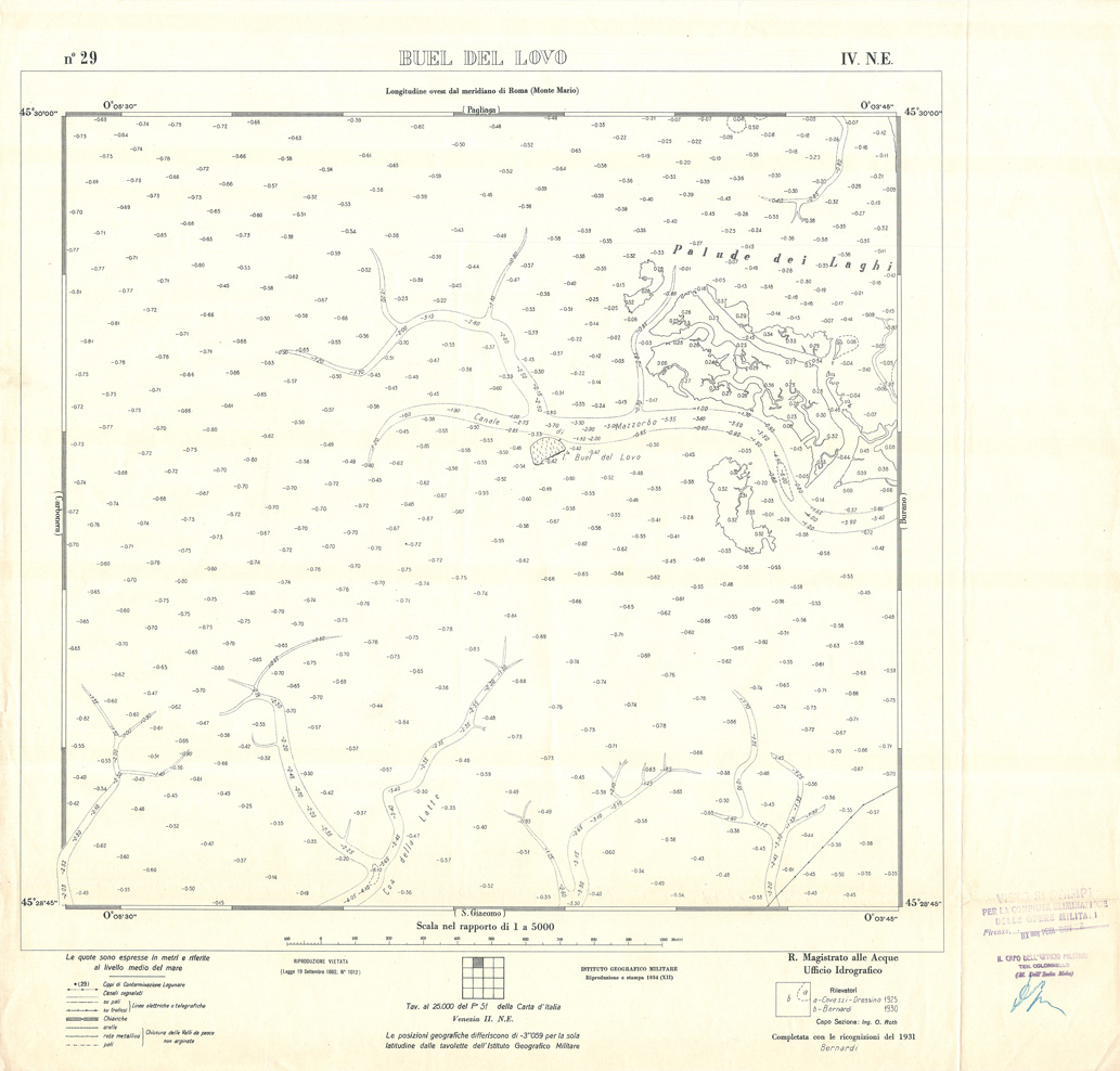 "Carta prodotta e stampata dall' IGM negli anni dal 1932 al 1934 su rilievi eseguiti dall' Ufficio Idrografico del Magistrato delle Acque negli anni dal 1921 al 1933"
