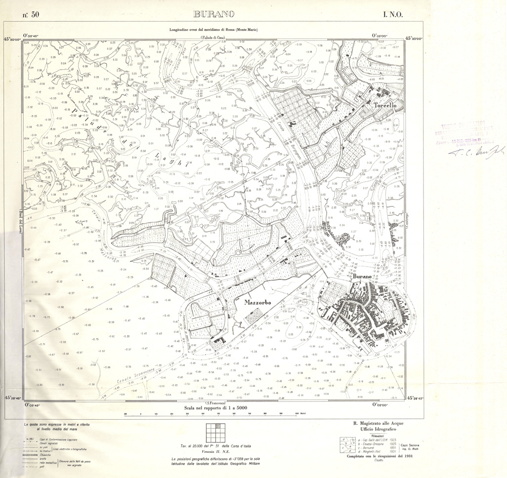 "Carta prodotta e stampata dall' IGM negli anni dal 1932 al 1934 su rilievi eseguiti dall' Ufficio Idrografico del Magistrato delle Acque negli anni dal 1921 al 1933"