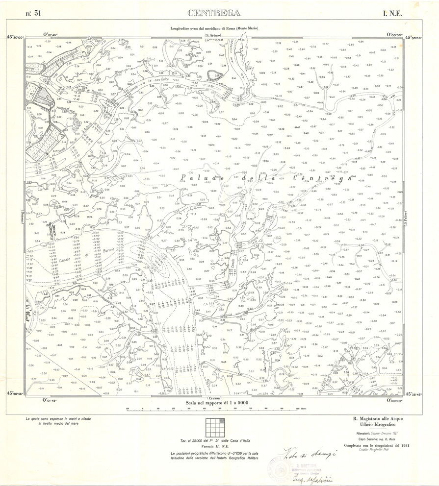 "Carta prodotta e stampata dall' IGM negli anni dal 1932 al 1934 su rilievi eseguiti dall' Ufficio Idrografico del Magistrato delle Acque negli anni dal 1921 al 1933"