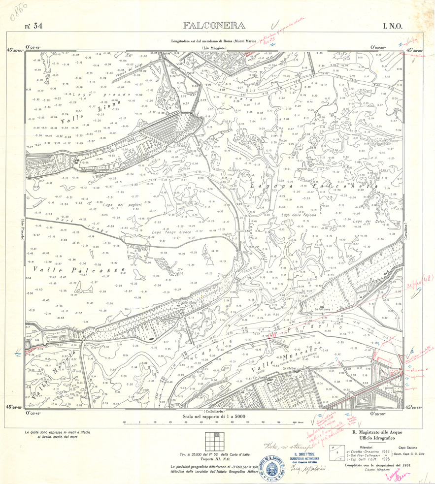 "Carta prodotta e stampata dall' IGM negli anni dal 1932 al 1934 su rilievi eseguiti dall' Ufficio Idrografico del Magistrato delle Acque negli anni dal 1921 al 1933"