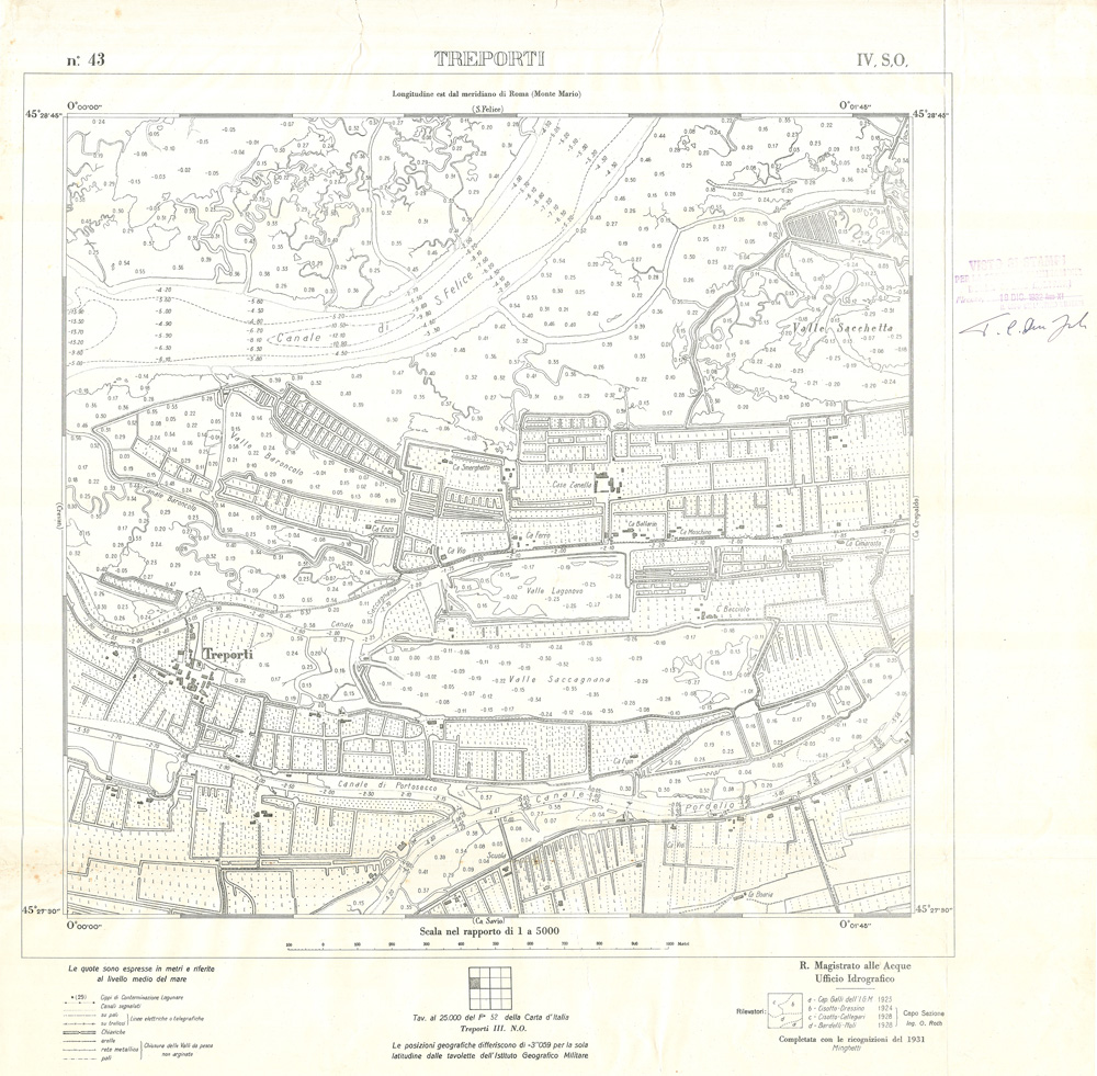 "Carta prodotta e stampata dall' IGM negli anni dal 1932 al 1934 su rilievi eseguiti dall' Ufficio Idrografico del Magistrato delle Acque negli anni dal 1921 al 1933"