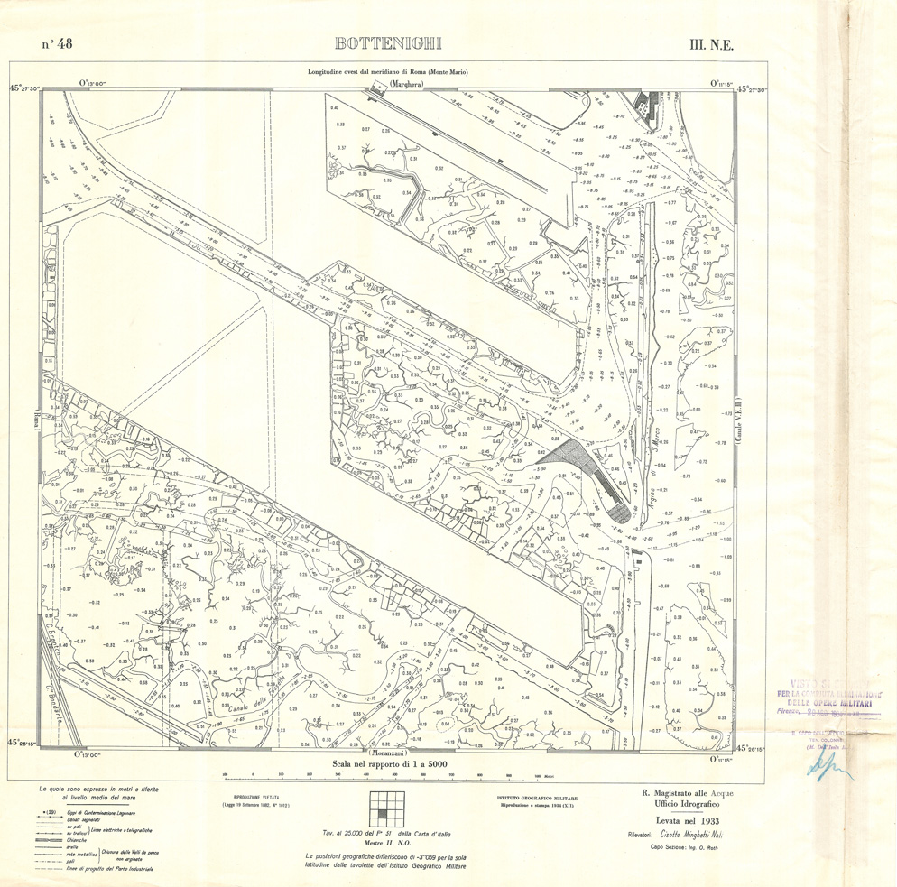 "Carta prodotta e stampata dall' IGM negli anni dal 1932 al 1934 su rilievi eseguiti dall' Ufficio Idrografico del Magistrato delle Acque negli anni dal 1921 al 1933"