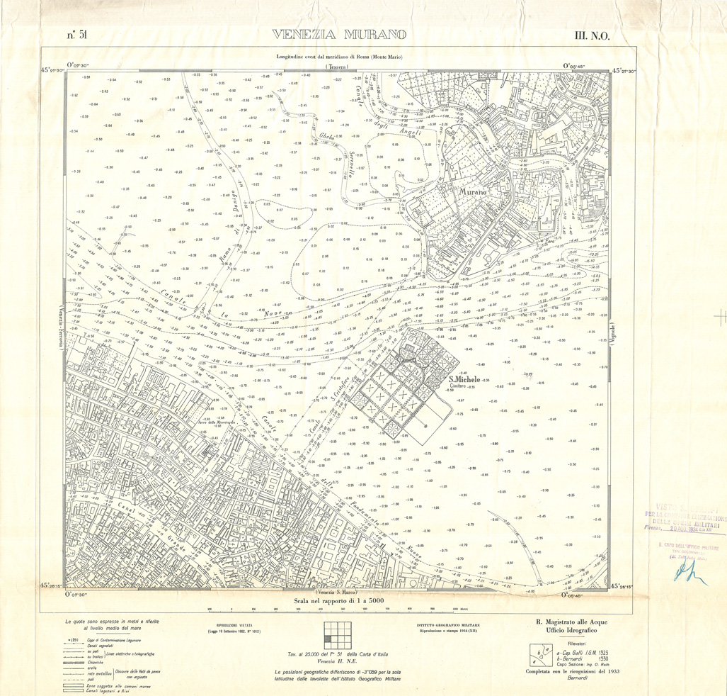 "Carta prodotta e stampata dall' IGM negli anni dal 1932 al 1934 su rilievi eseguiti dall' Ufficio Idrografico del Magistrato delle Acque negli anni dal 1921 al 1933"