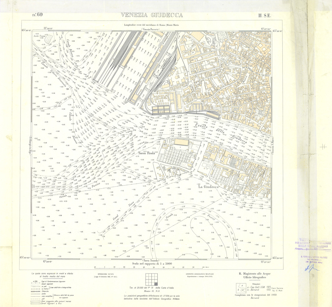 "Carta prodotta e stampata dall' IGM negli anni dal 1932 al 1934 su rilievi eseguiti dall' Ufficio Idrografico del Magistrato delle Acque negli anni dal 1921 al 1933"
