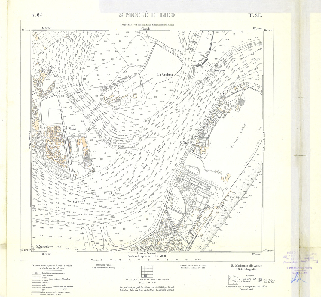 CARTA DELLA LAGUNA DI VENEZIA - FOGLIO 62 III SE - S. NICOLO DI LIDO