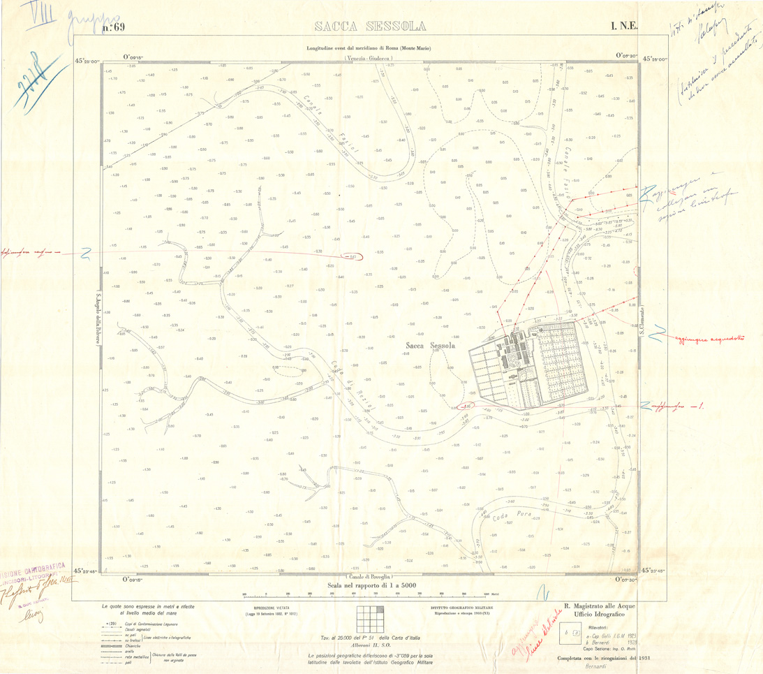 "Carta prodotta e stampata dall' IGM negli anni dal 1932 al 1934 su rilievi eseguiti dall' Ufficio Idrografico del Magistrato delle Acque negli anni dal 1921 al 1933"