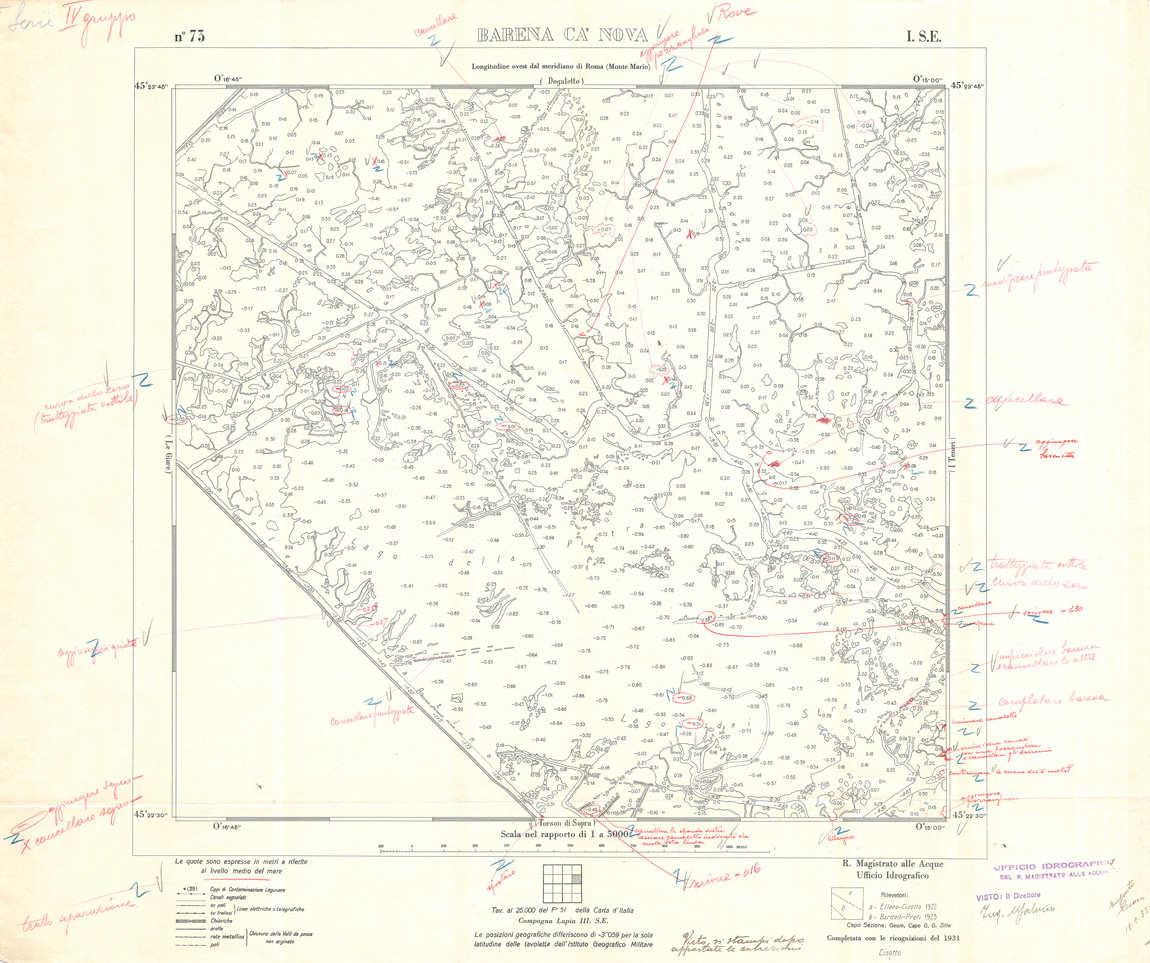 "Carta prodotta e stampata dall' IGM negli anni dal 1932 al 1934 su rilievi eseguiti dall' Ufficio Idrografico del Magistrato delle Acque negli anni dal 1921 al 1933"
