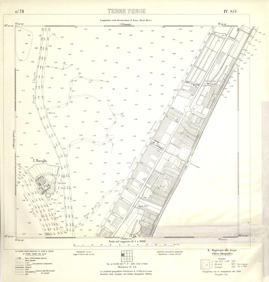 "Carta prodotta e stampata dall' IGM negli anni dal 1932 al 1934 su rilievi eseguiti dall' Ufficio Idrografico del Magistrato delle Acque negli anni dal 1921 al 1933"