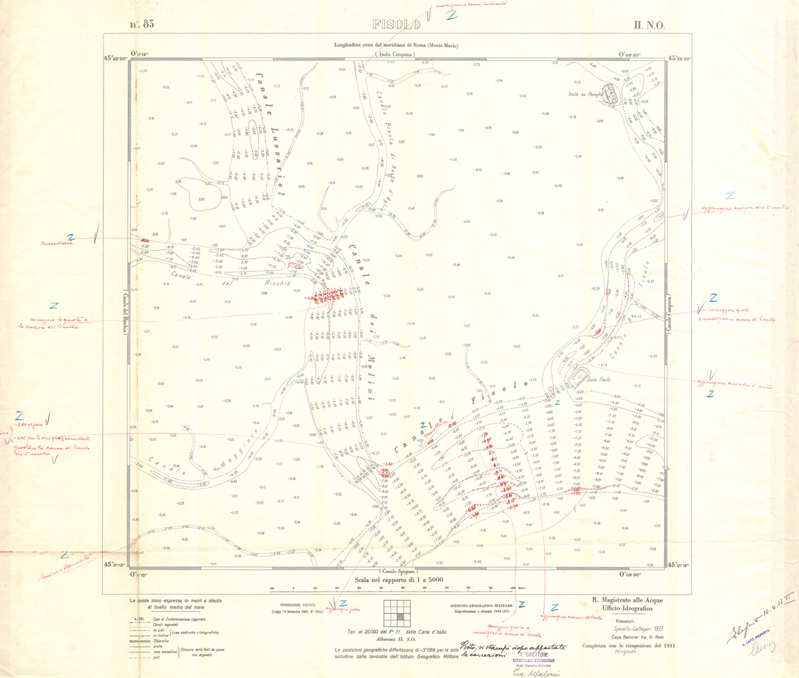 "Carta prodotta e stampata dall' IGM negli anni dal 1932 al 1934 su rilievi eseguiti dall' Ufficio Idrografico del Magistrato delle Acque negli anni dal 1921 al 1933"